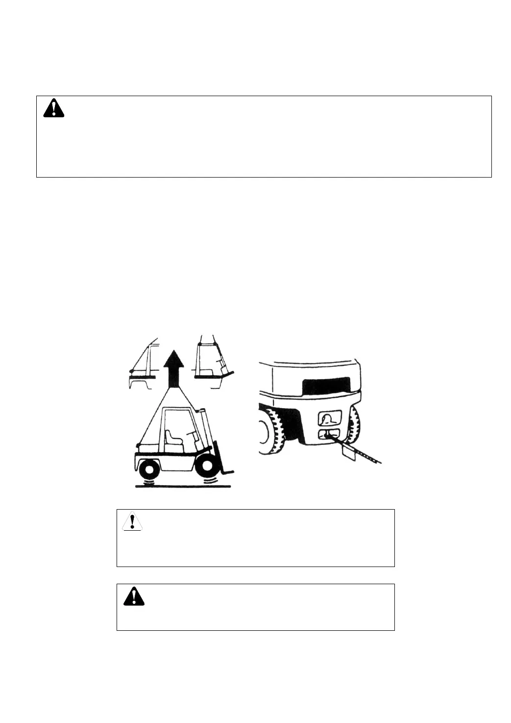 • When hoisting the truck, do not coil the overhead guard with the steel wire.