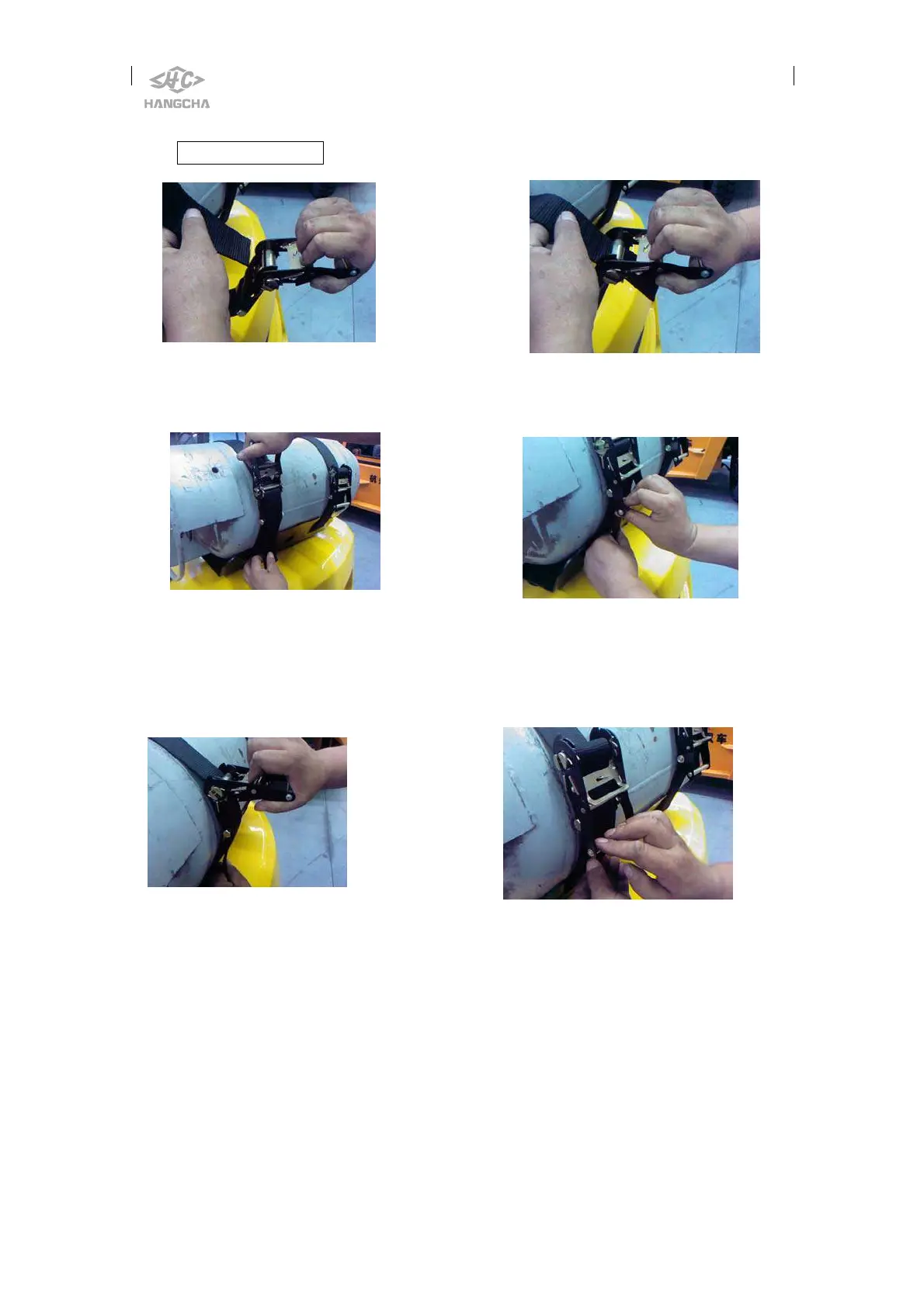 a. Hold strain device with right hand, take buckle