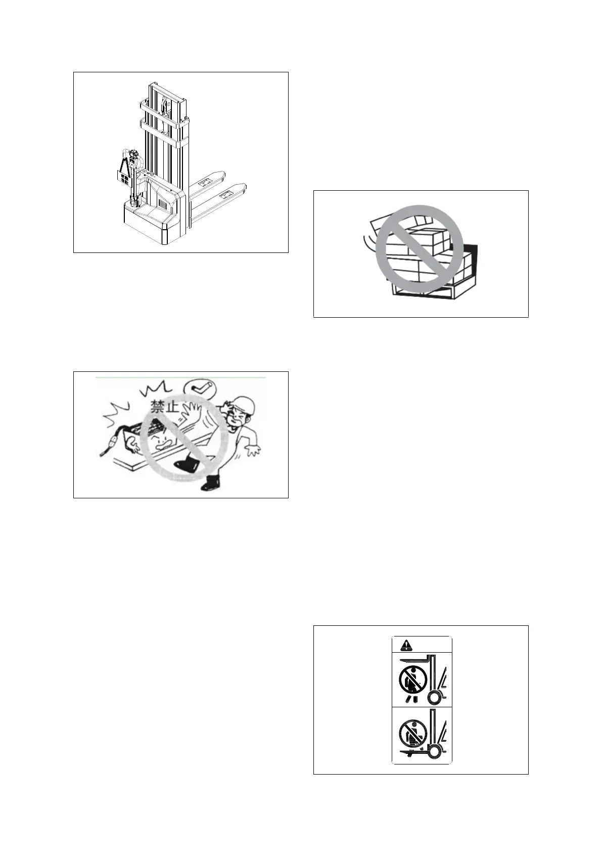 or body under the forks. Never stand on