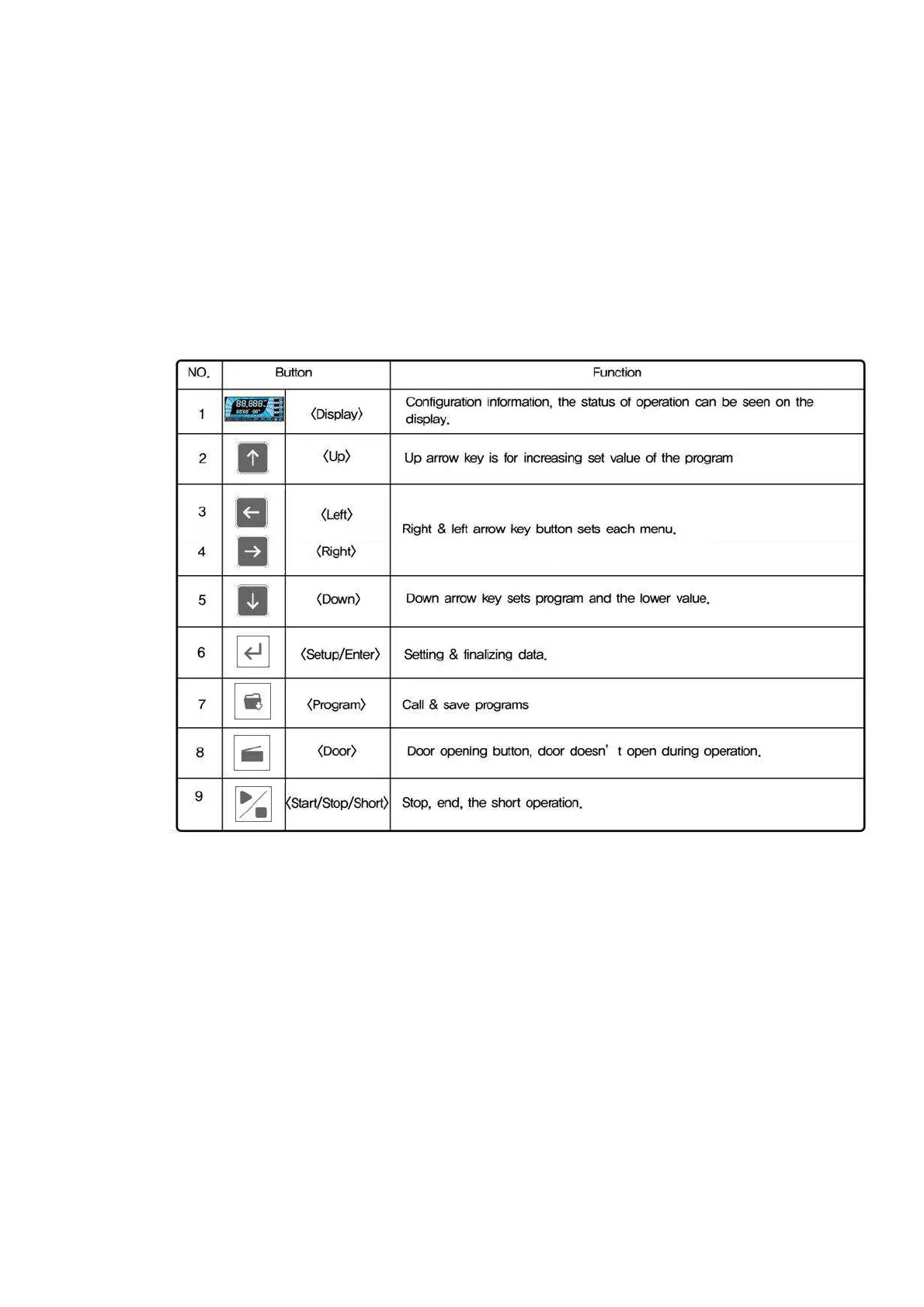Hanil FLETA 40P - Function Checks; Control Panel Description