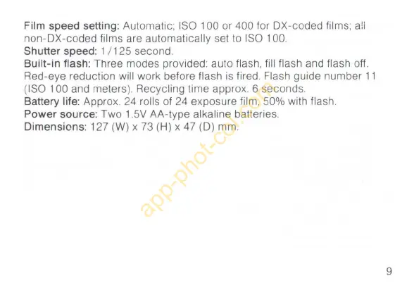 Film speed setting: Automatic; ISO 100 or 400 for DX-coded films;