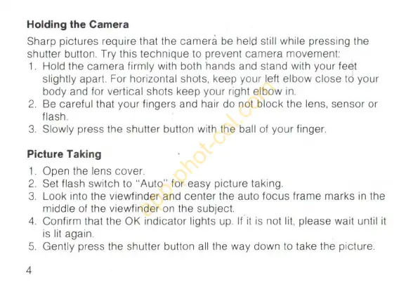 Sharp pictures require that the camerà be held still while pressing the