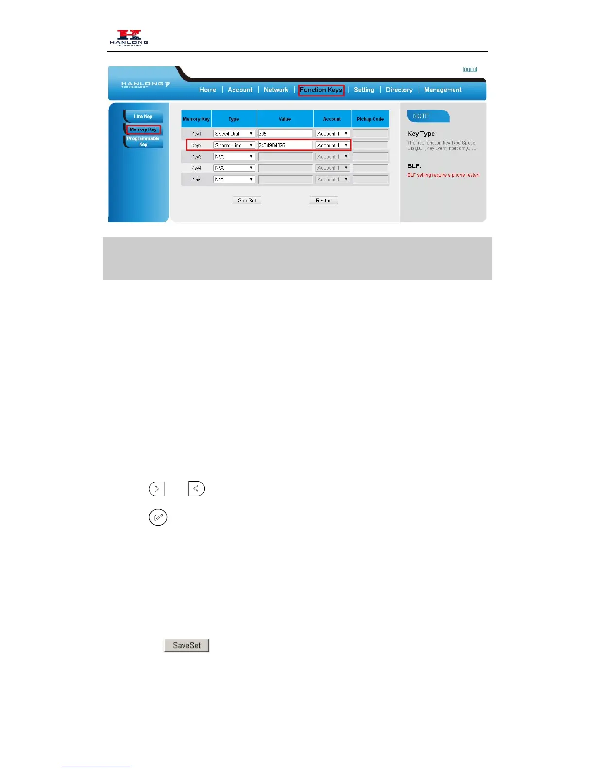 1. Click Function keys →Memory Key.