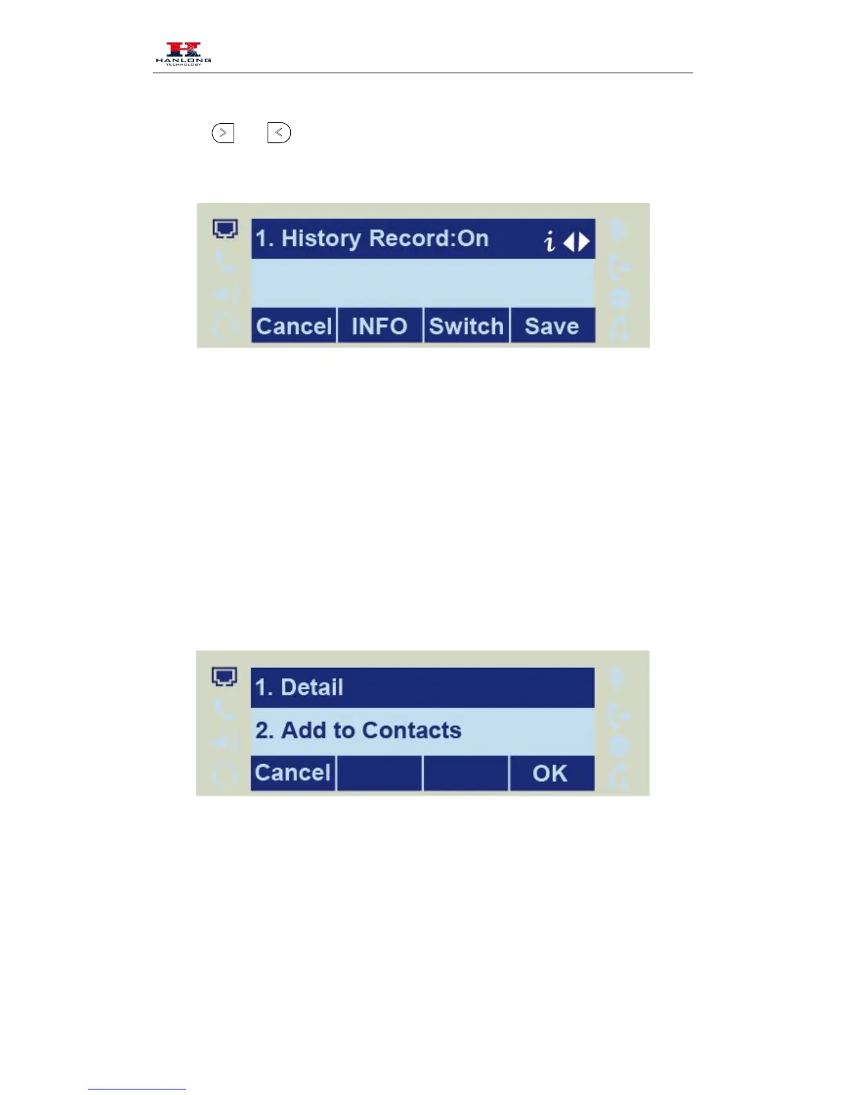 or Switch soft key to enable History record.
