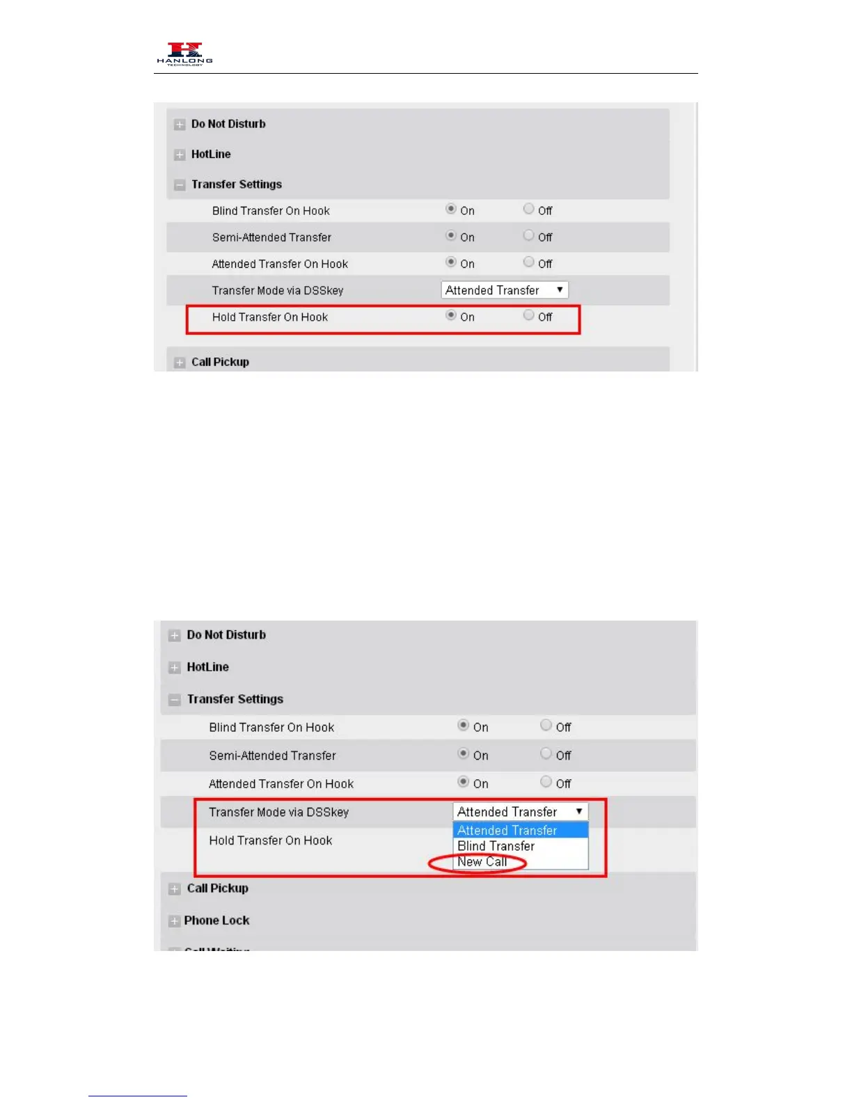 3. Select the desired Line or Memory key and select Transfer in the Type.