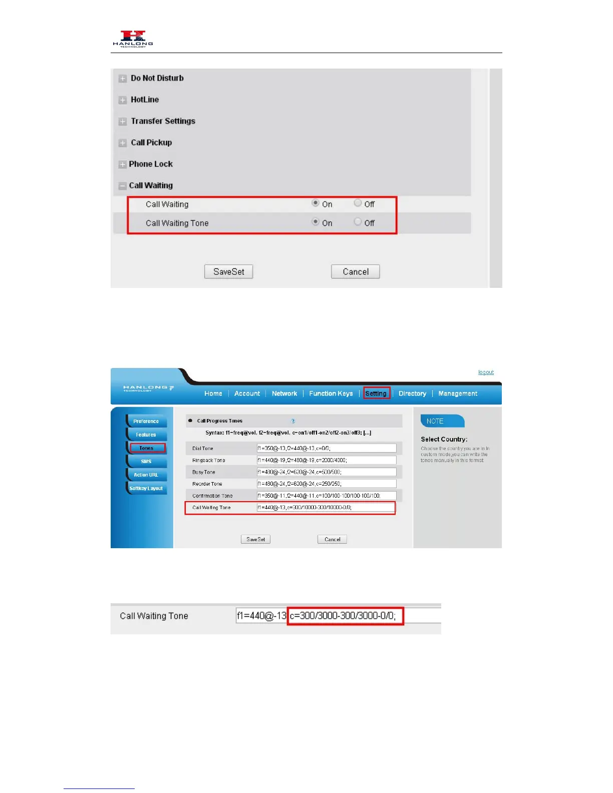 1. Click Setting Tones