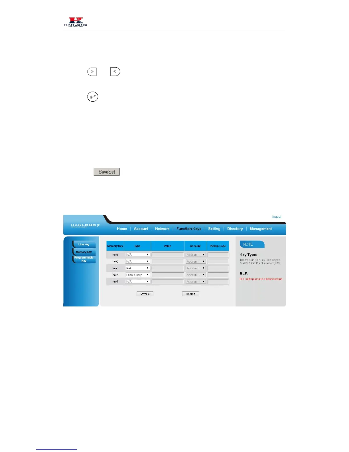 1. Press Menu → Features → Function Keys → Memory keys as Function Keys → Memory