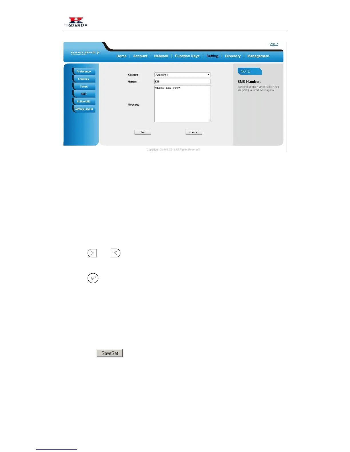 Hanlong UC802(P) - Set SMS Memory Key; Sendsms