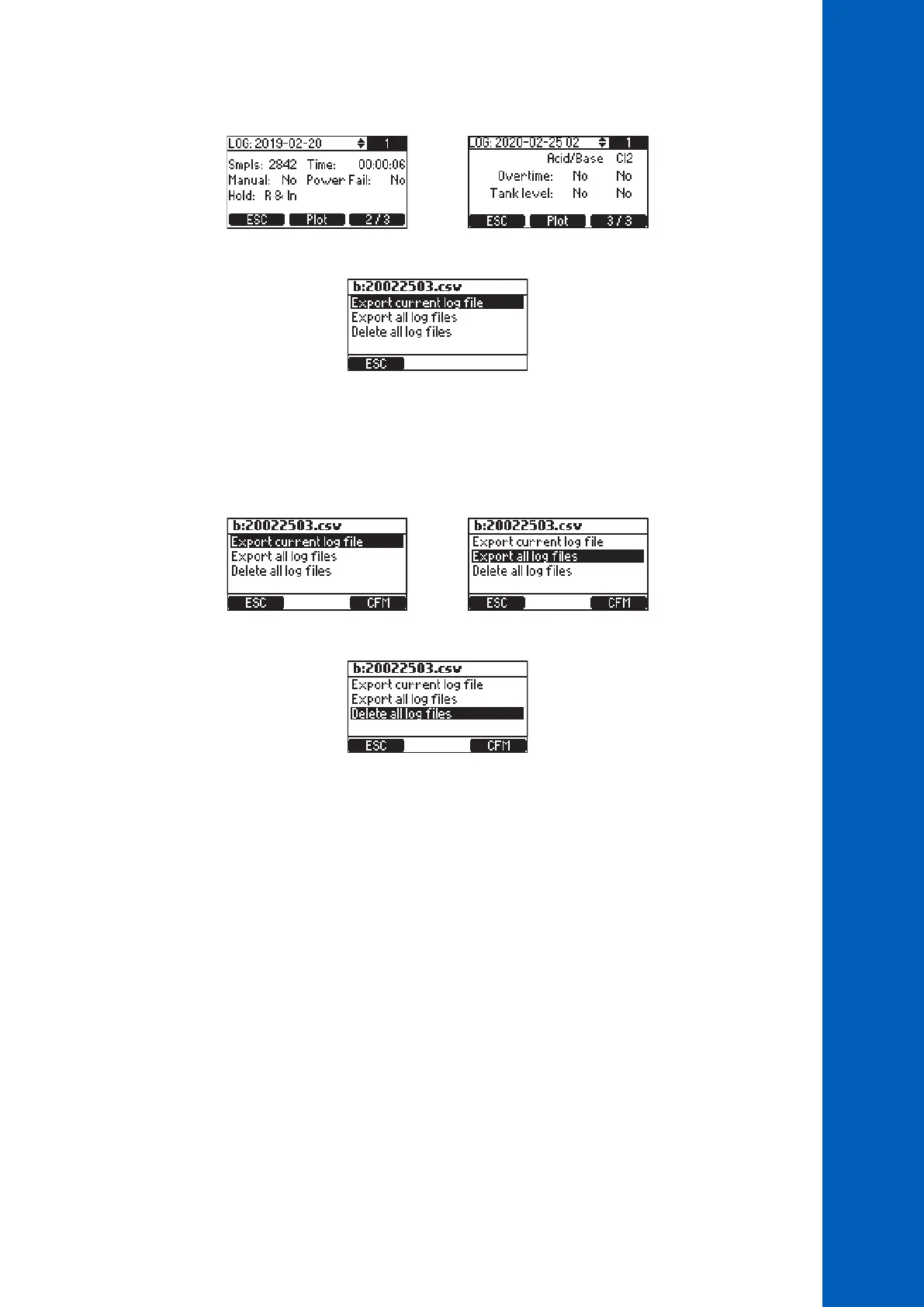 • All logs can be deleted by selecting Delete all log files option and pressing CFM.
