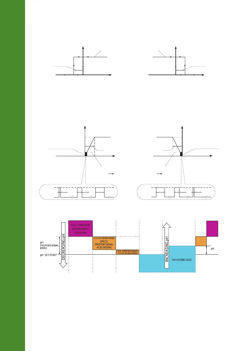 With Proportional control enabled in SETUP, the dosing time depends on the difference between pH