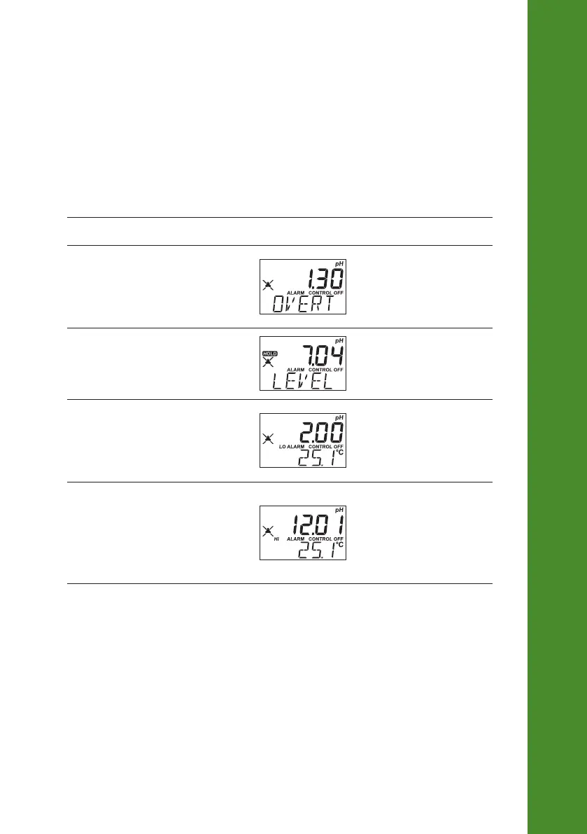 The table below illustrates the conditions that will activate the alarm and deactivate the control pump.