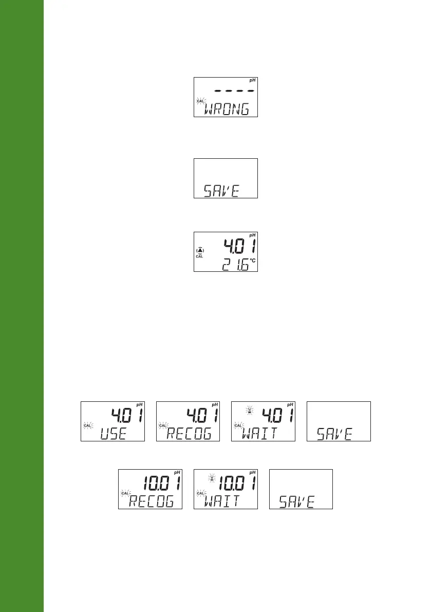 reading is outside accepted range), “---- WRONG” message is displayed along with CAL tag blinking.