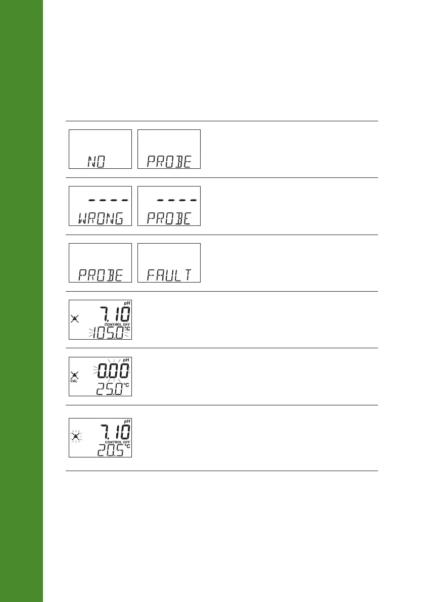 The pump controller shows error messages when erroneous conditions appear and when measured