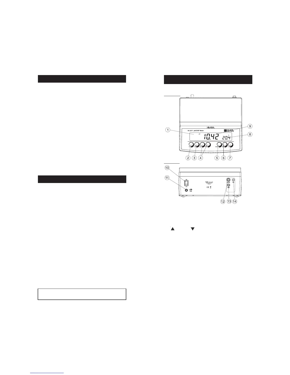 5) RANGE key, to select measurement range (HI 2211 only).