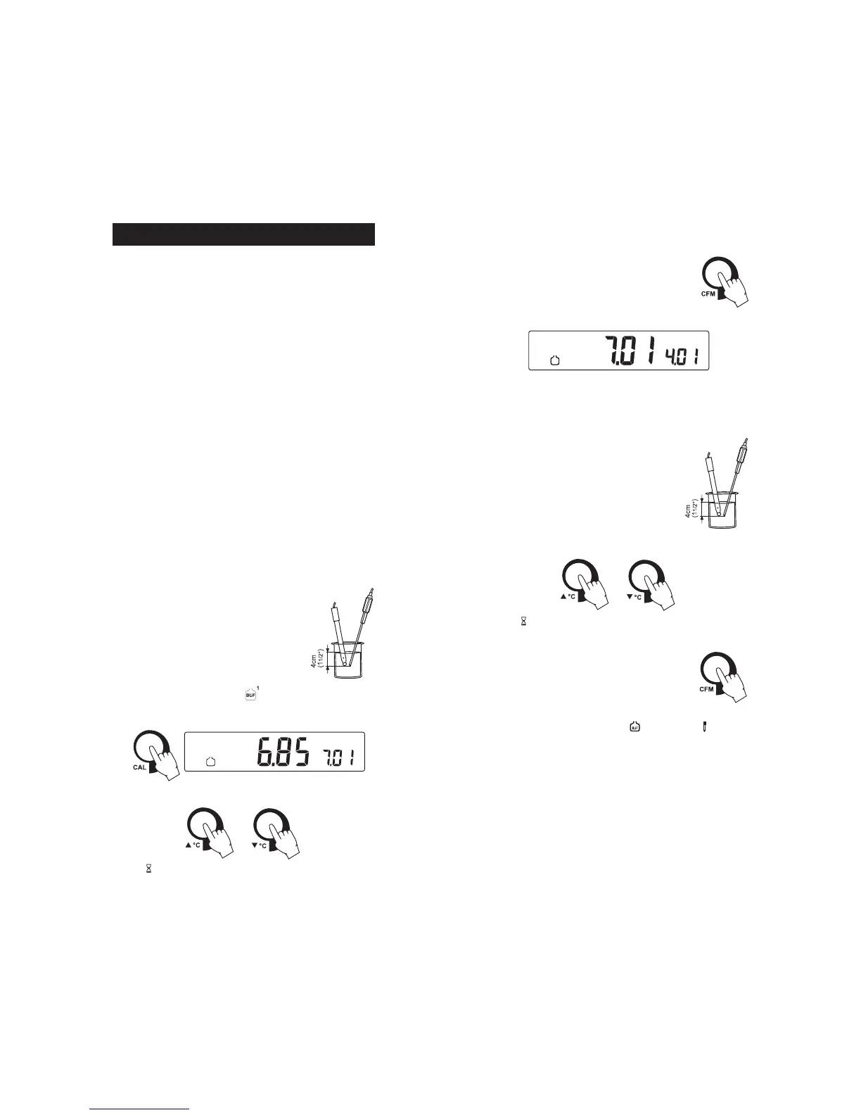• Submerge the pH electrode and the tempera-