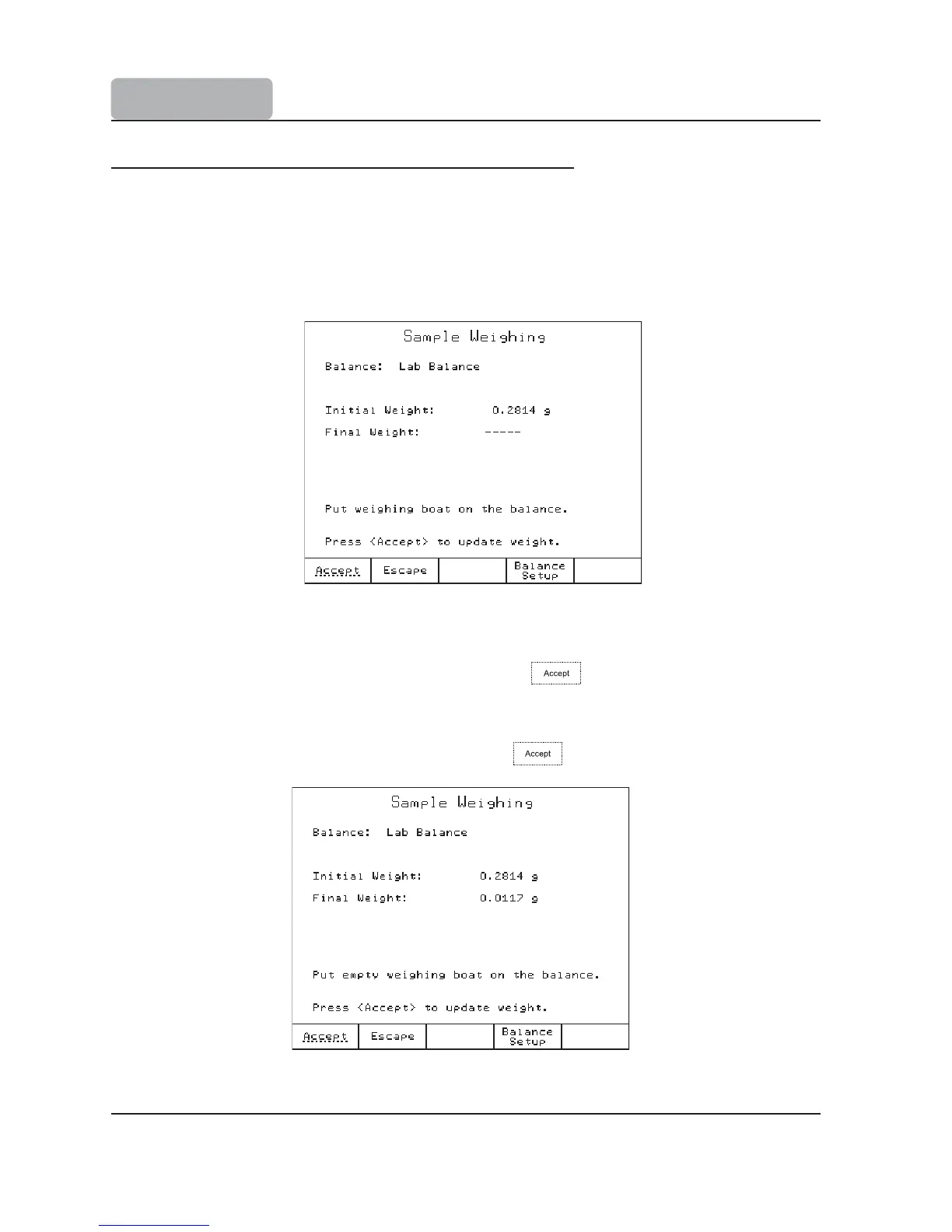 Note: The user must make sure that the balance and the titrator are properly configured and