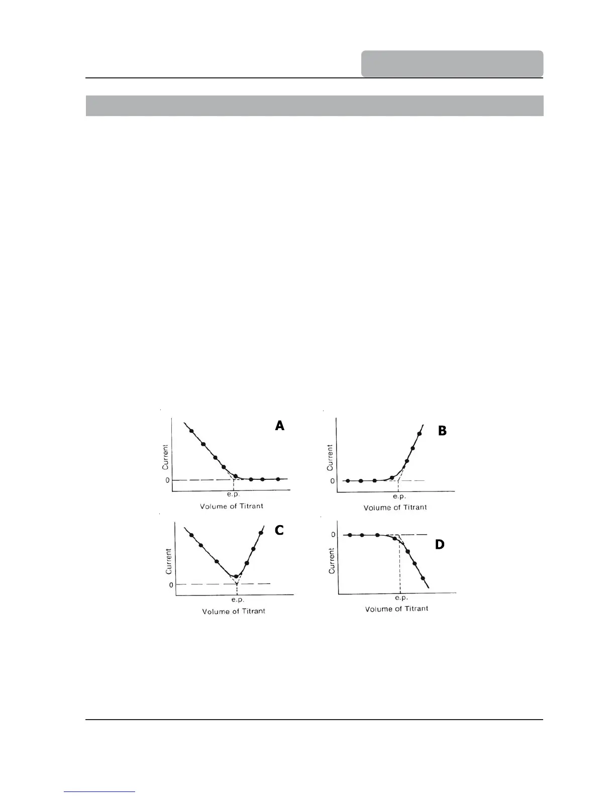 but the titrant is. In “C” both the analyte and titrant are active and both give current flow. Graph “D”
