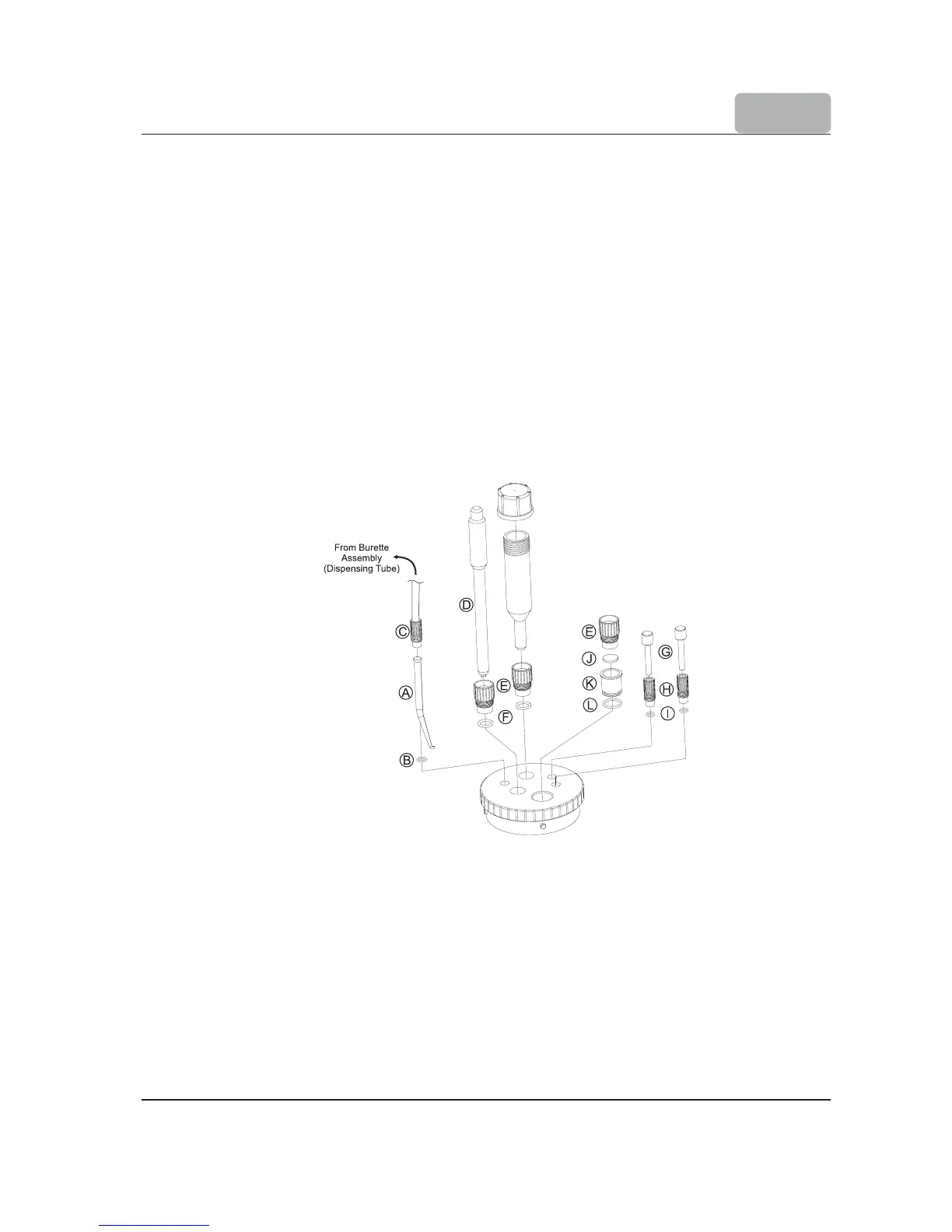 • Fasten the dispensing tubing from the burette assembly to the dispensing tip port