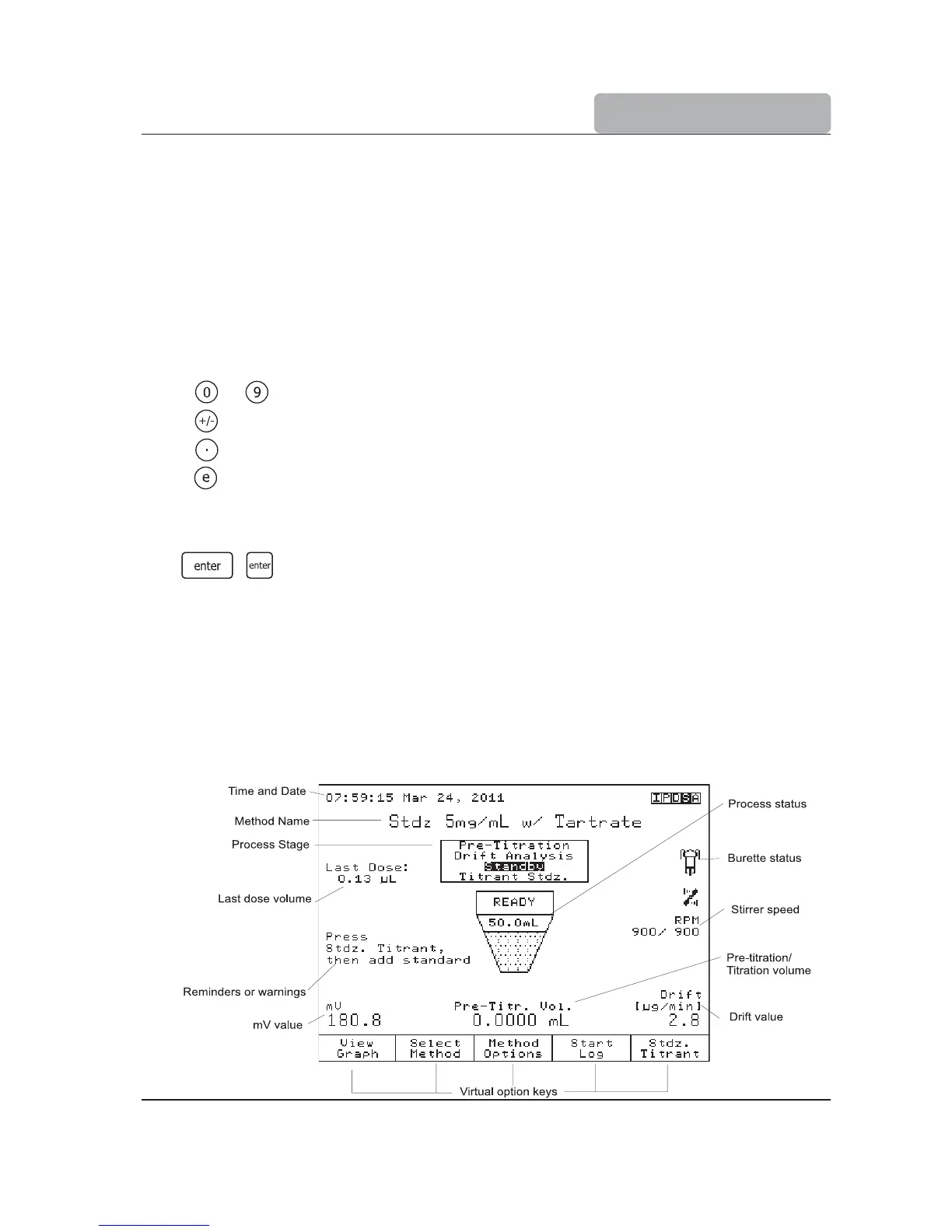 The user interface contains several screens for each titrator function.
