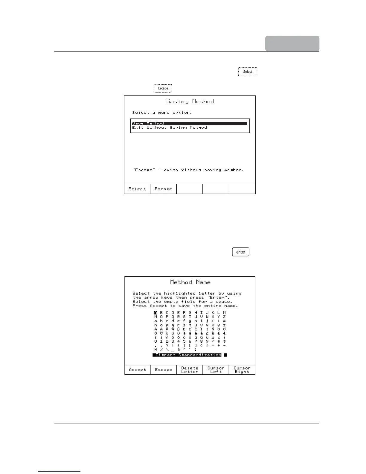 This option allows you to enter a name for the new method (up to 24 characters). Use the