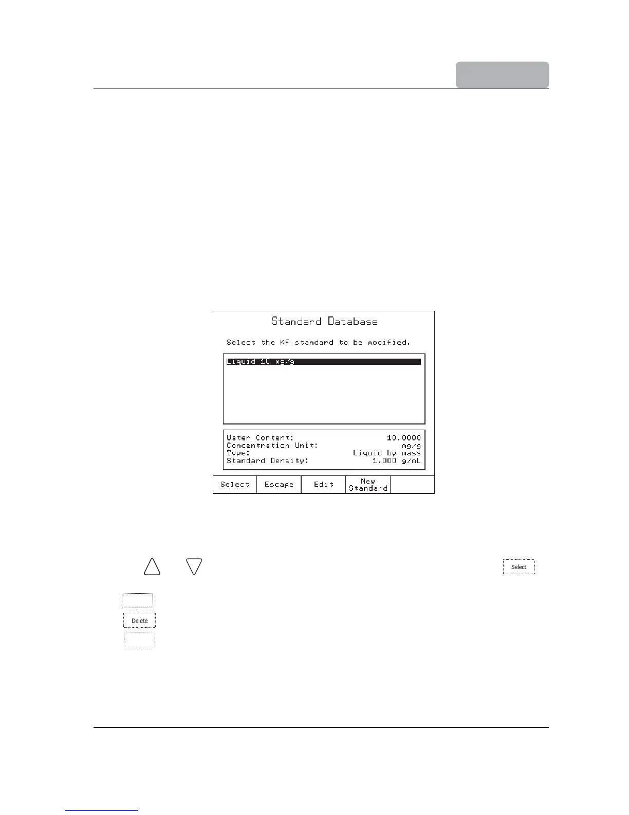 and keys, highlight the standard from the existing list and press to