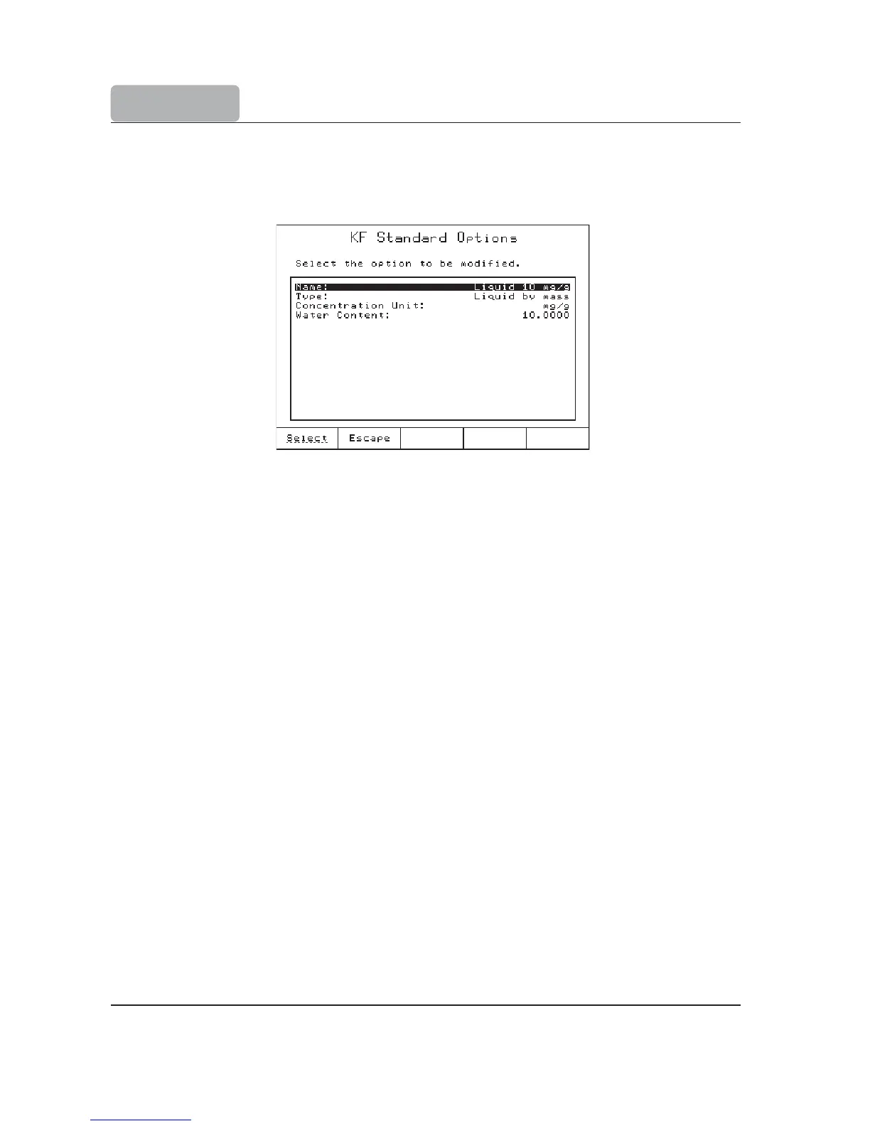 The concentration of the standard can be entered (content of water in the selected unit).
