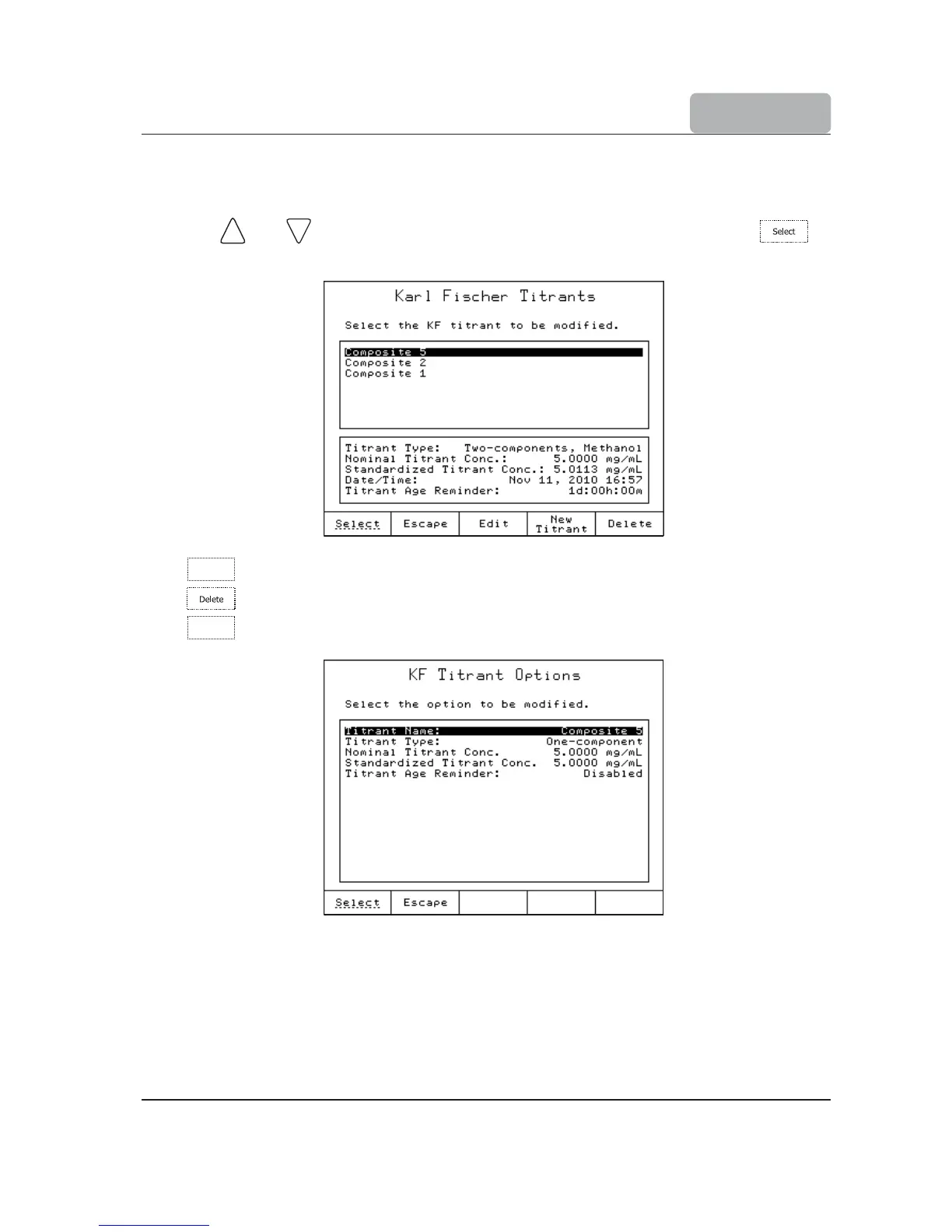 and keys, highlight the titrant from the existing list and press to