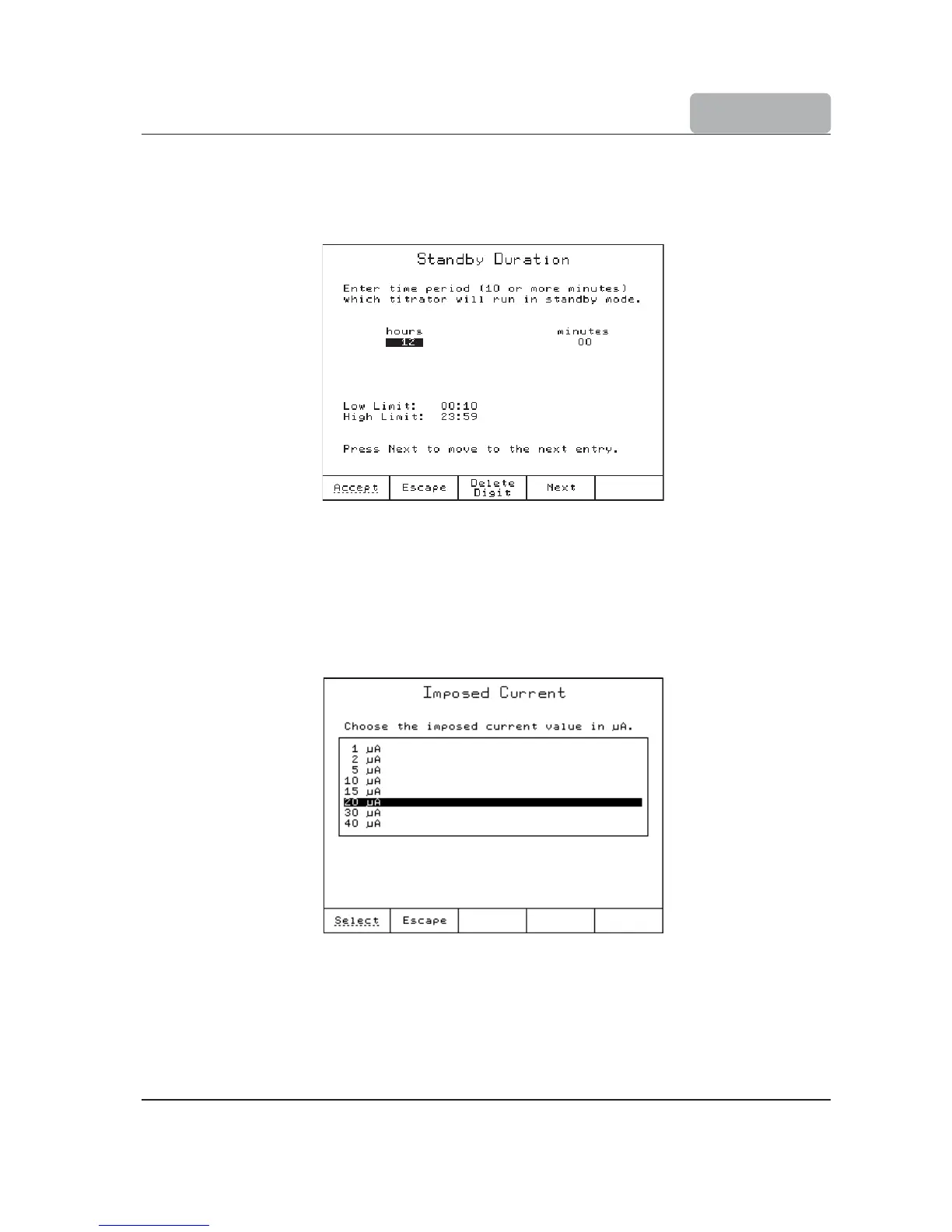 This option allows the user to select the electrode polarization current from the predefined list.