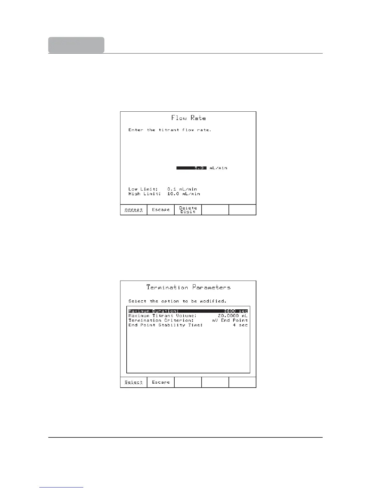 Note: The titrator will automatically detect the burette size and display the correct high limit