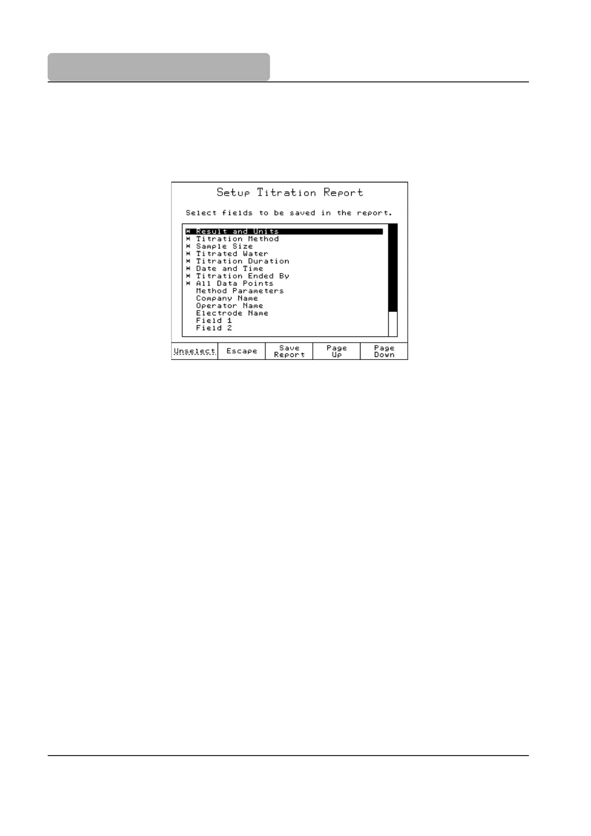 Customize a unique report to record the titration results. An asterisk means that it will be