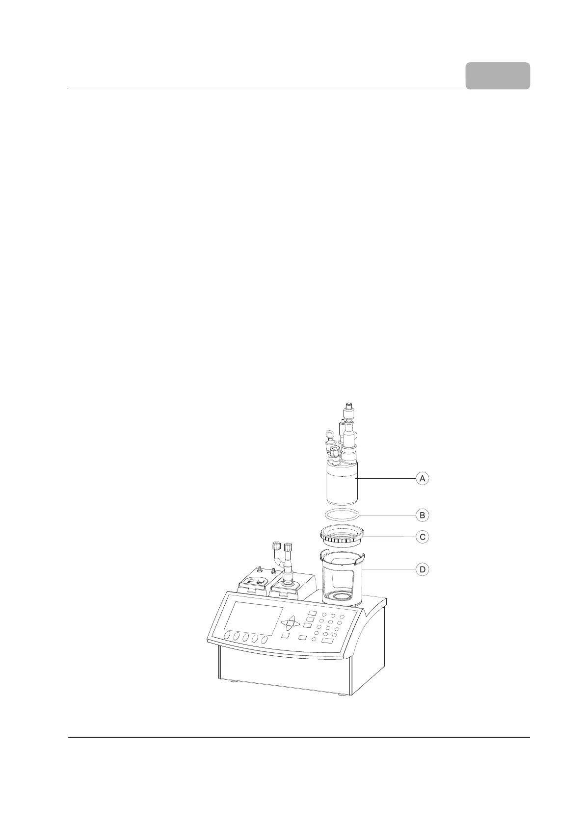 • Lower titration vessel into the vessel support (D) by gently pushing it through the
