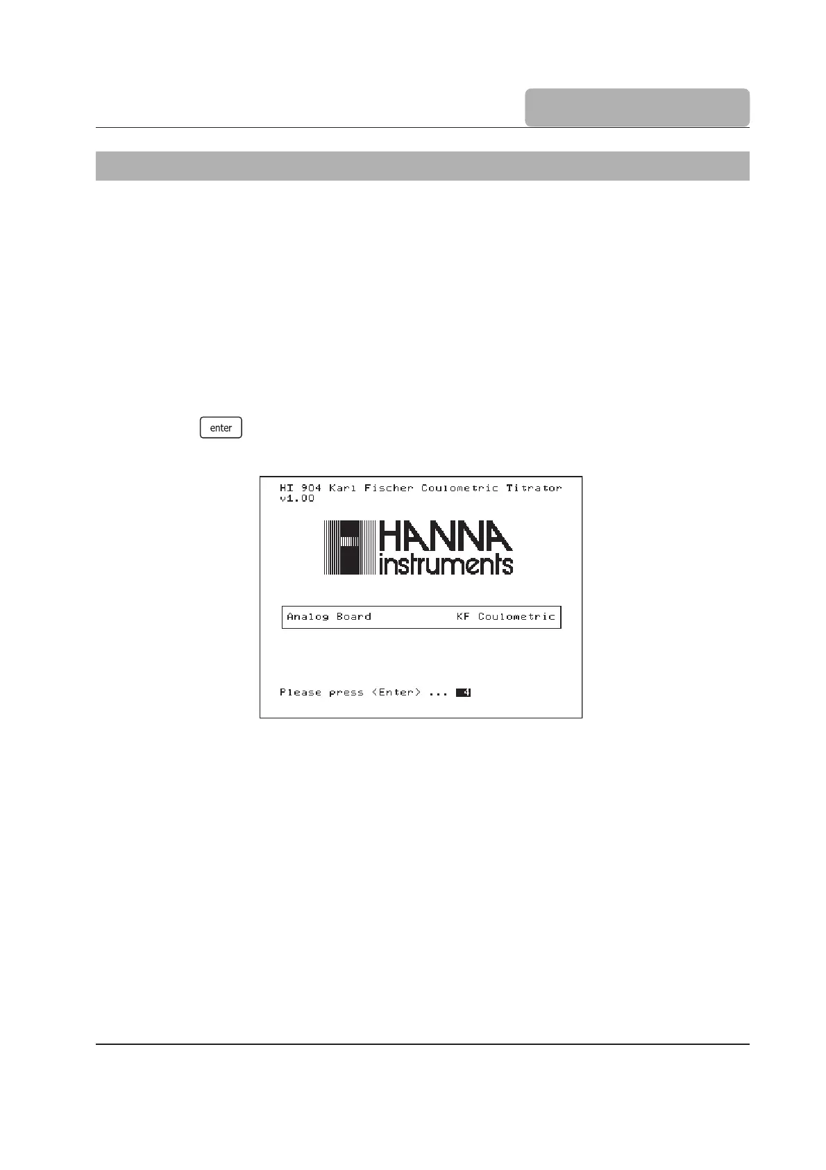 • Wait until the titrator finishes the initialization process.
