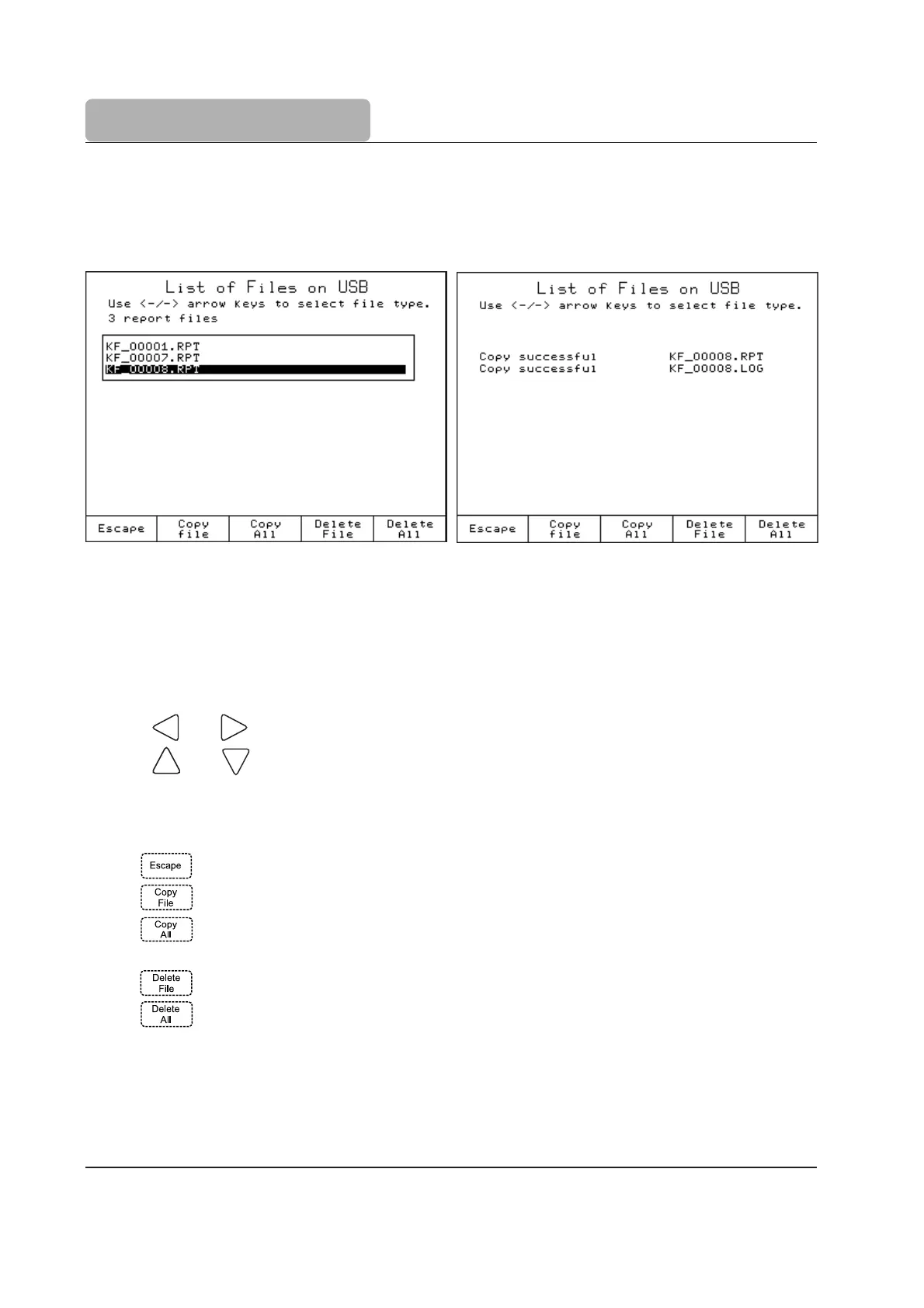 This screen allows the user to transfer files from the USB storage device to the titrator.