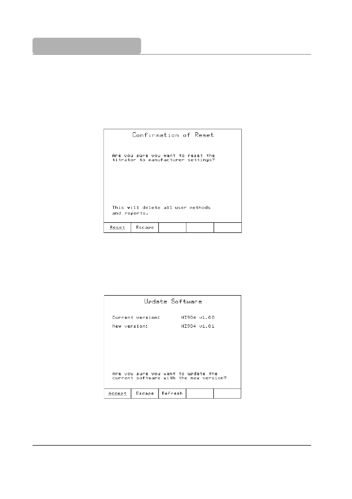 This screen allows the user to update the titrator software from a USB storage device
