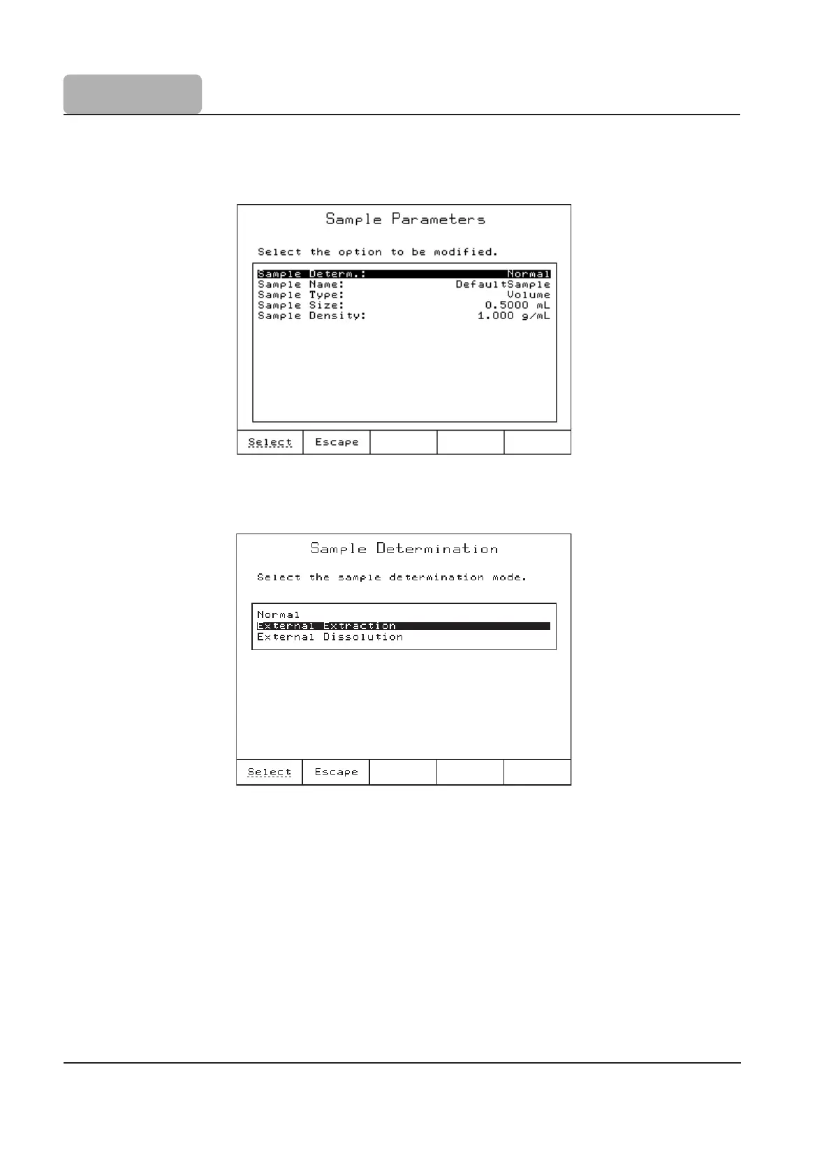 This screen allows the user to select the sample determination mode.