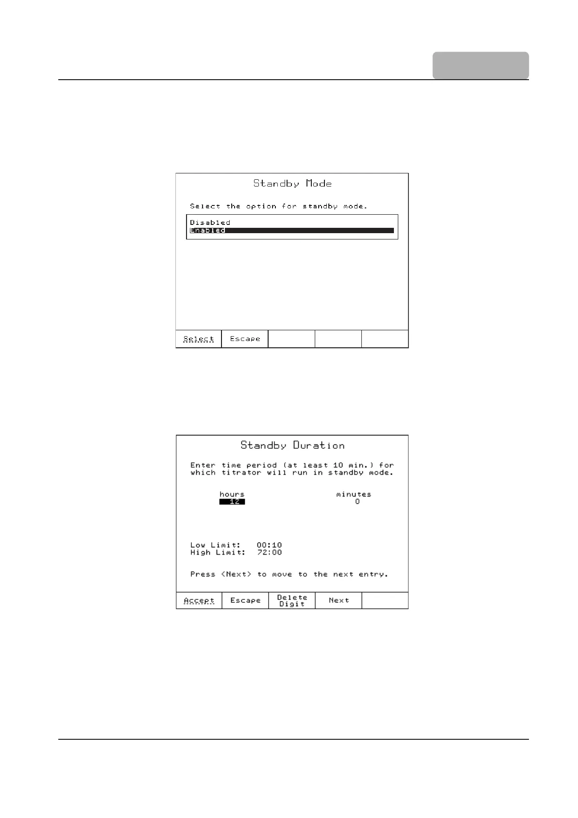 When enabling this option, the titrator will automatically revert to Standby mode after a