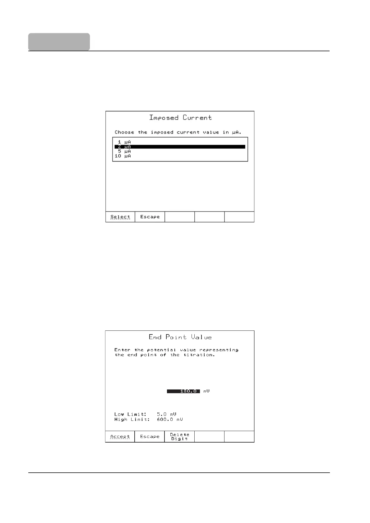 This option allows the user to select the electrode polarization current from the predefined list.