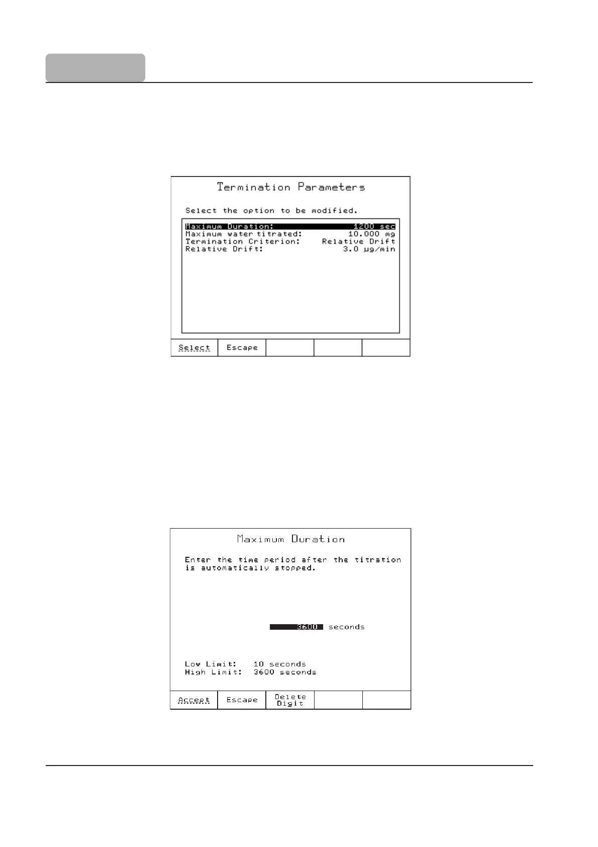 Specify the maximum time a titration is allowed to run. Once this point is reached, the