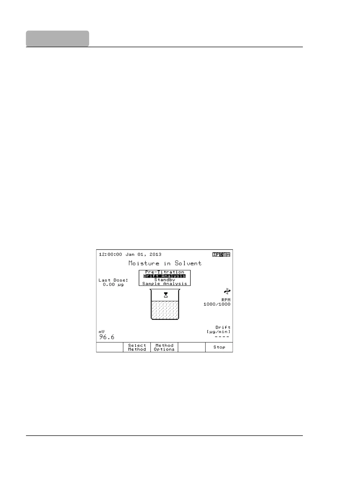 Note: If the pre-titration lasts longer than 30 minutes the titrator switches to Idle mode.