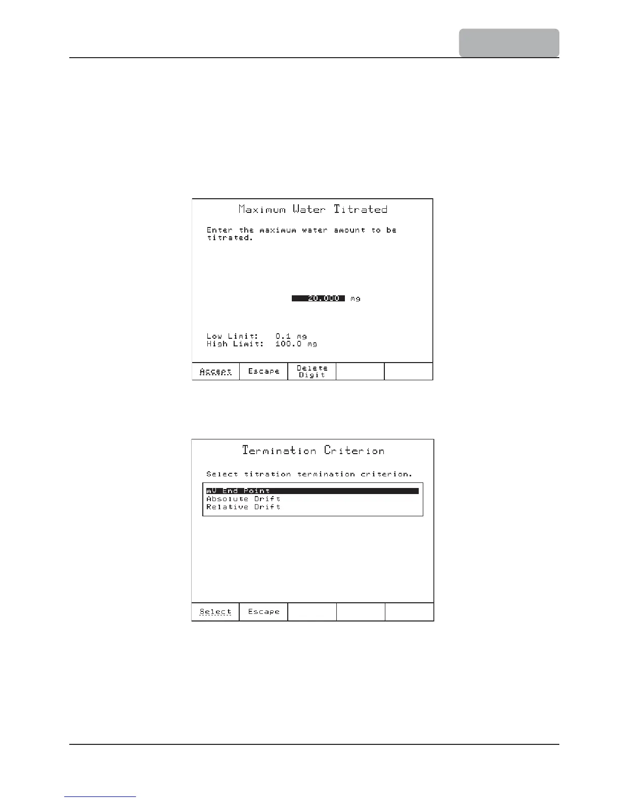 7KLVVFUHHQDOORZVWKHXVHUWRVHWWKHWLWUDWLRQWHUPLQDWLRQFULWHULRQ
