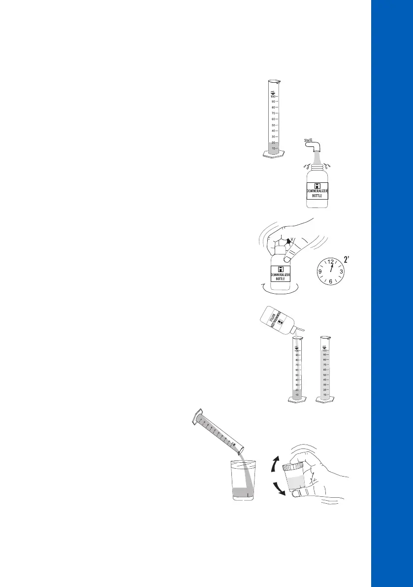 • Remove the cap and fill the Demineralizer Bottle with tap water.