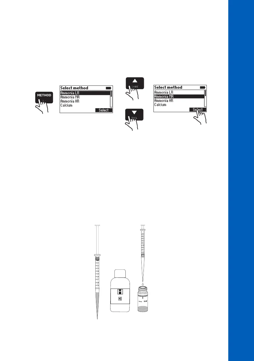 In order to select the desired method press the METHOD key and a screen with the available methods