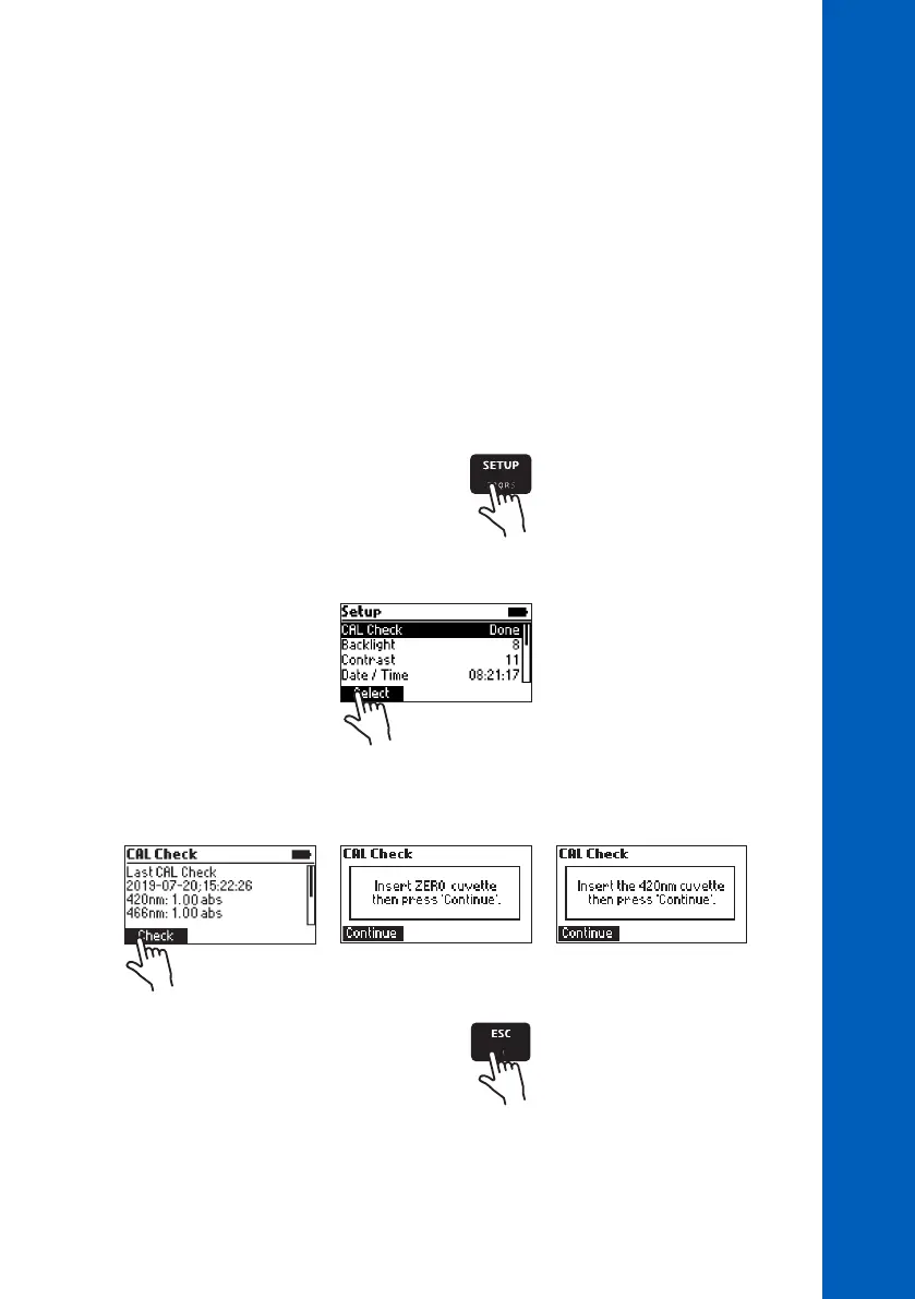 CAL Check Standards (see ACCESSORIES section). The CAL Check screen guides the user through the