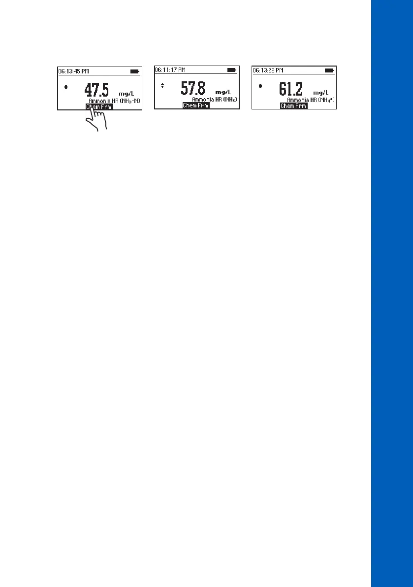 • Press Chem Frm to convert the result to mg/L of ammonia (NH