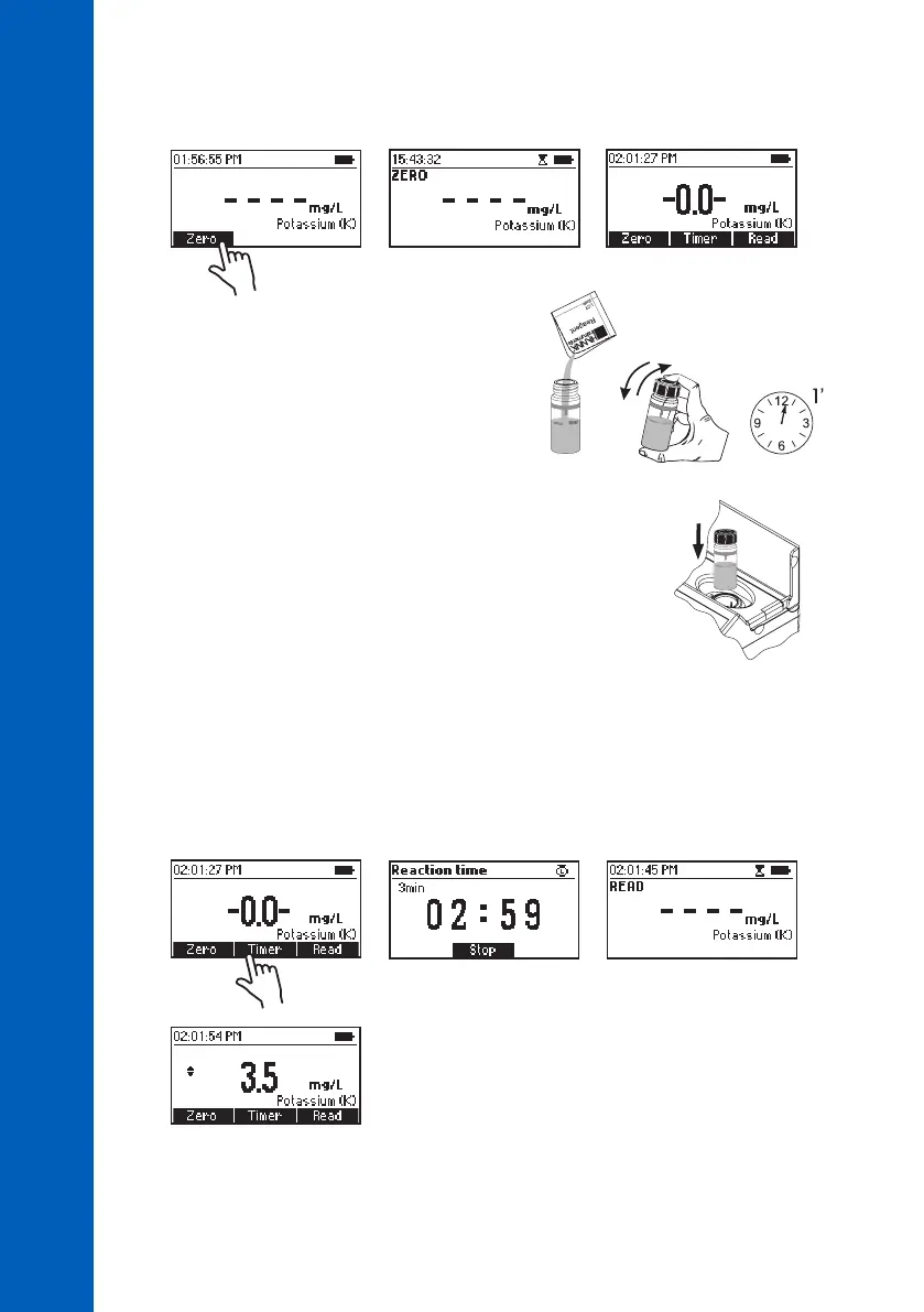 • Press Read to start reading. The instrument displays the results in mg/L of potassium (K).