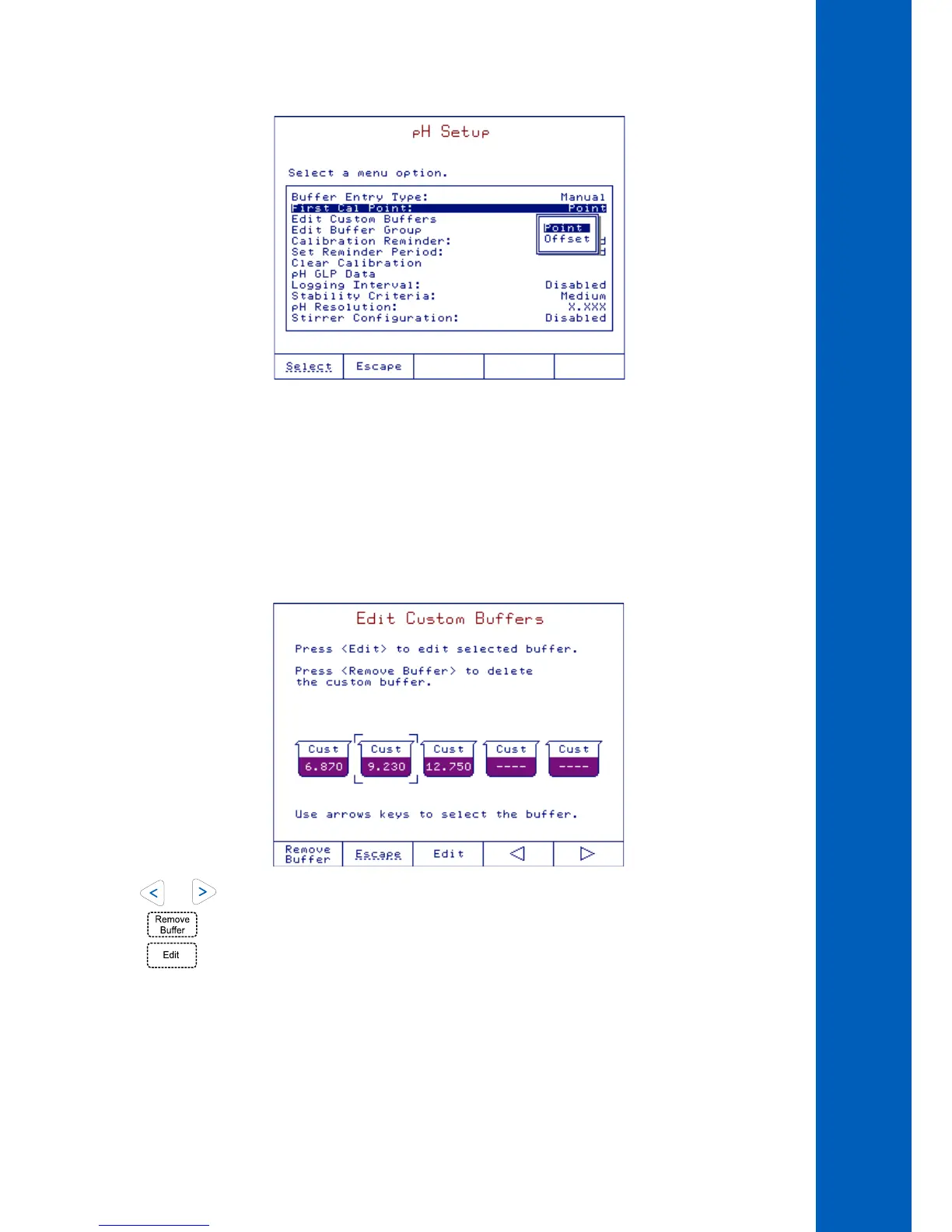 If you wish to use buffers other than the standard ones, use the Edit Custom Buffers option to set the desired pH value, up to five pH