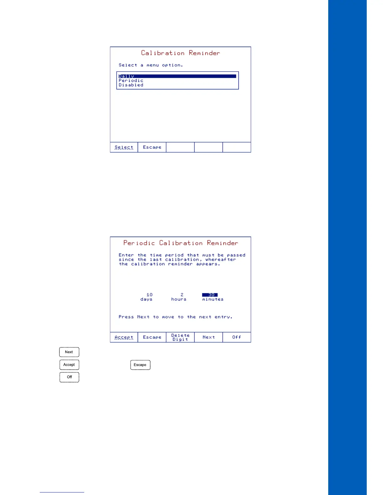 Periodic: The calibration reminder will appear after the set time has elapsed since the last calibration.