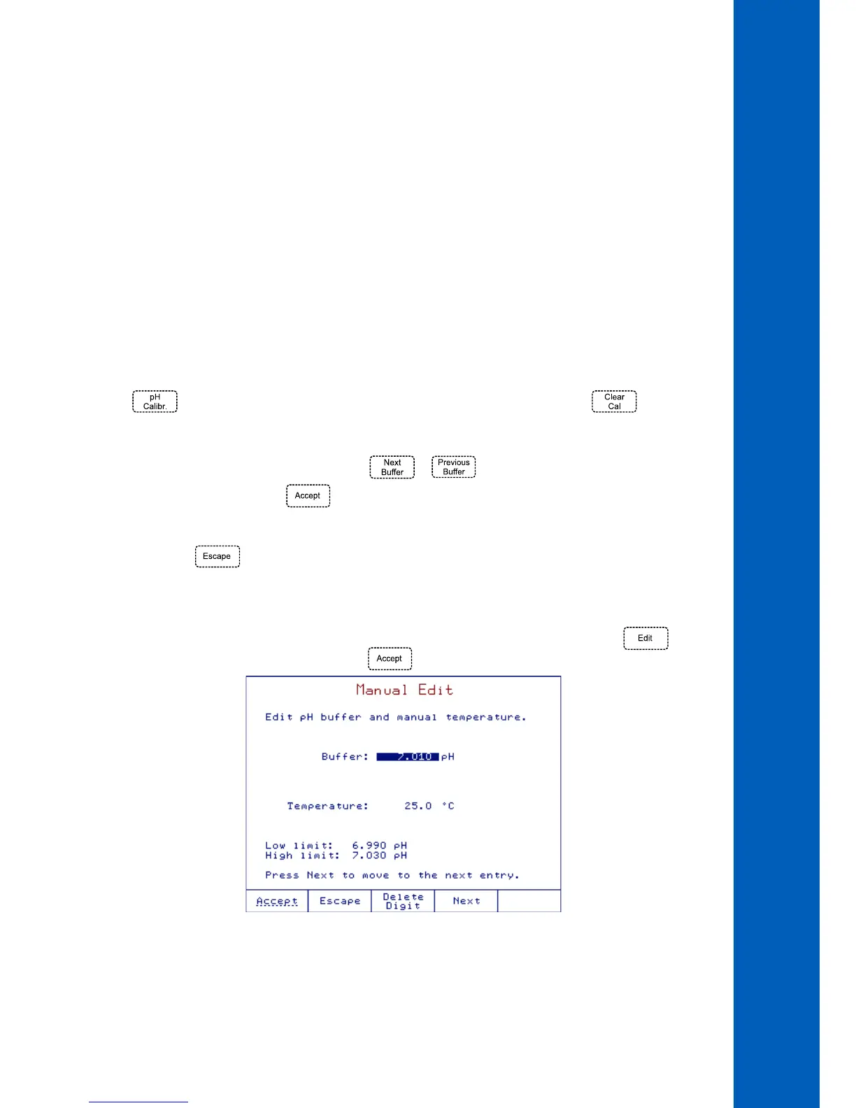 • The new calibration points will replace old ones if the difference between them is ± 0.2 pH.