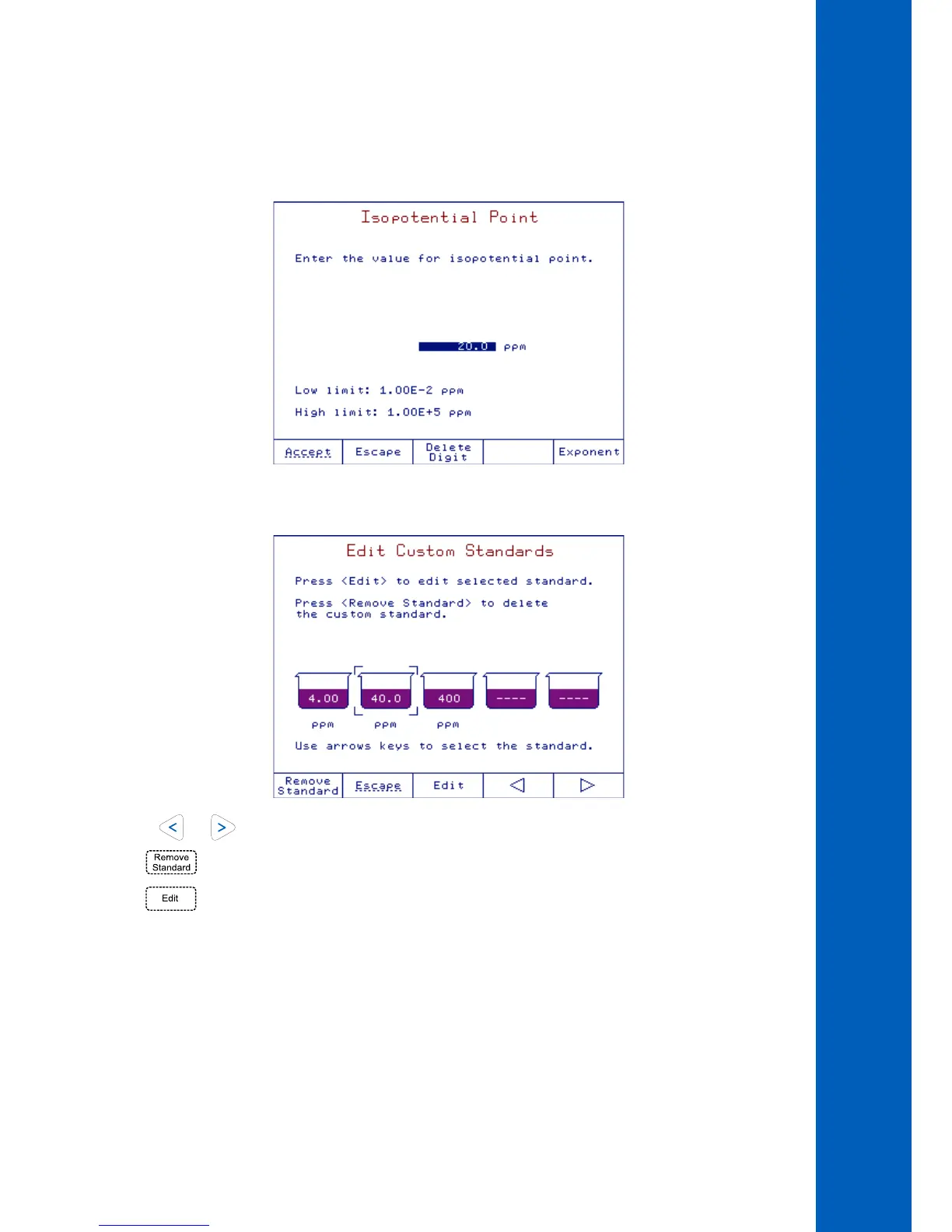 • Press to edit the selected custom standard; use the numeric keys to edit the standard.