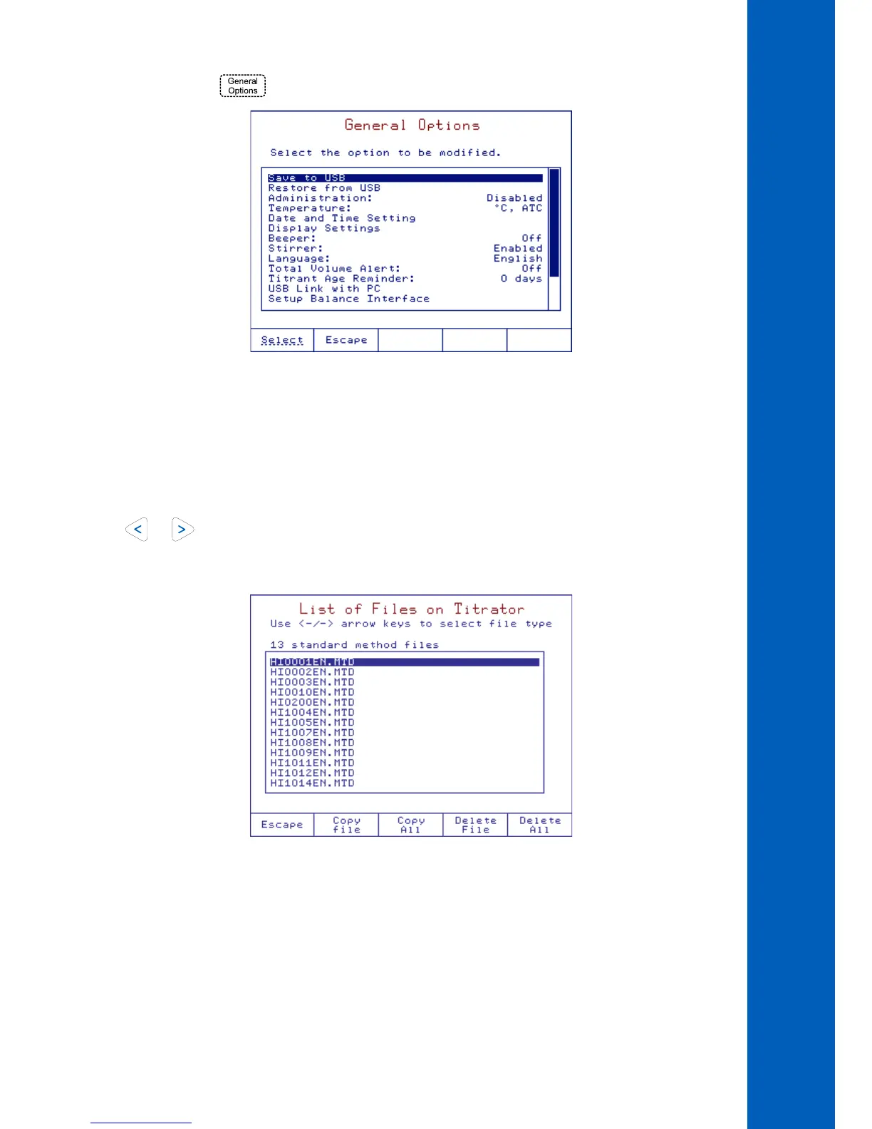 Use the and keys to select the file type. The number of files and the file name on the titrator will be displayed.